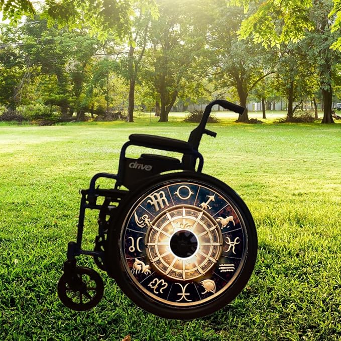 These designer wheel covers (pair of 2) enhance the aesthetics and appearance of your wheelchair. Crafted from high-quality polycarbonate material, these lightweight covers are easy to install and remove. Each set includes two covers with a diameter of 20 inches (50.8 cm) to fit standard wheelchair wheels. You can use the wheelchair with covers on the wheels, our covers will not hinder the purpose of the wheelchair. Designed to add a touch of style and personalization to your mobility device, these covers are a practical and fashionable accessory. Upgrade the look of your wheelchair with these durable and attractive wheel covers.