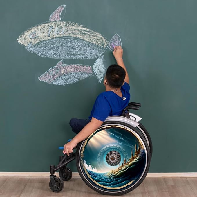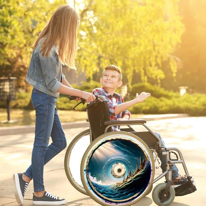 Designer Cover for Wheelchair Wheels, Enhances Aesthetics, Easy Install/Remove, Lightweight (Fantasy Land)