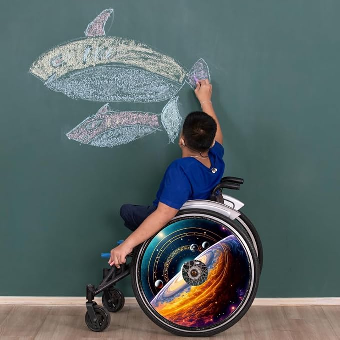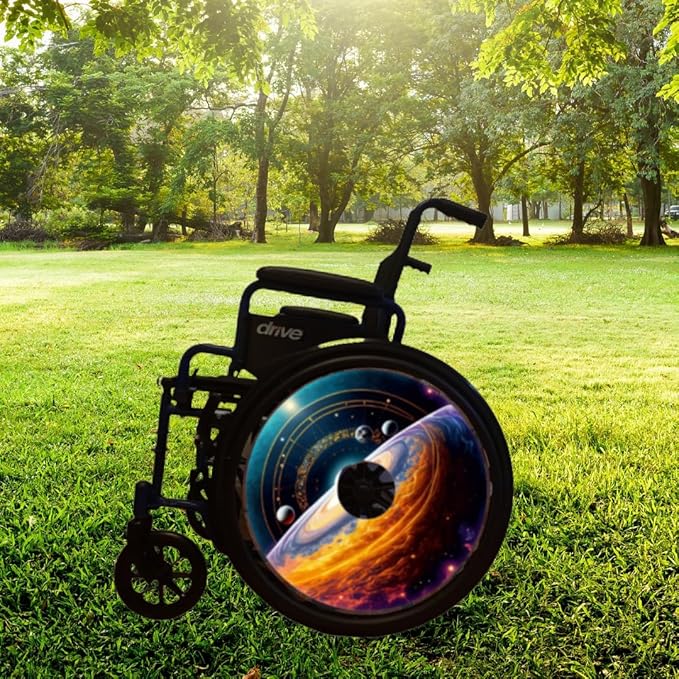 Designer Cover for Wheelchair Wheels, Enhances Aesthetics, Easy Install/Remove, Lightweight (Solar System)