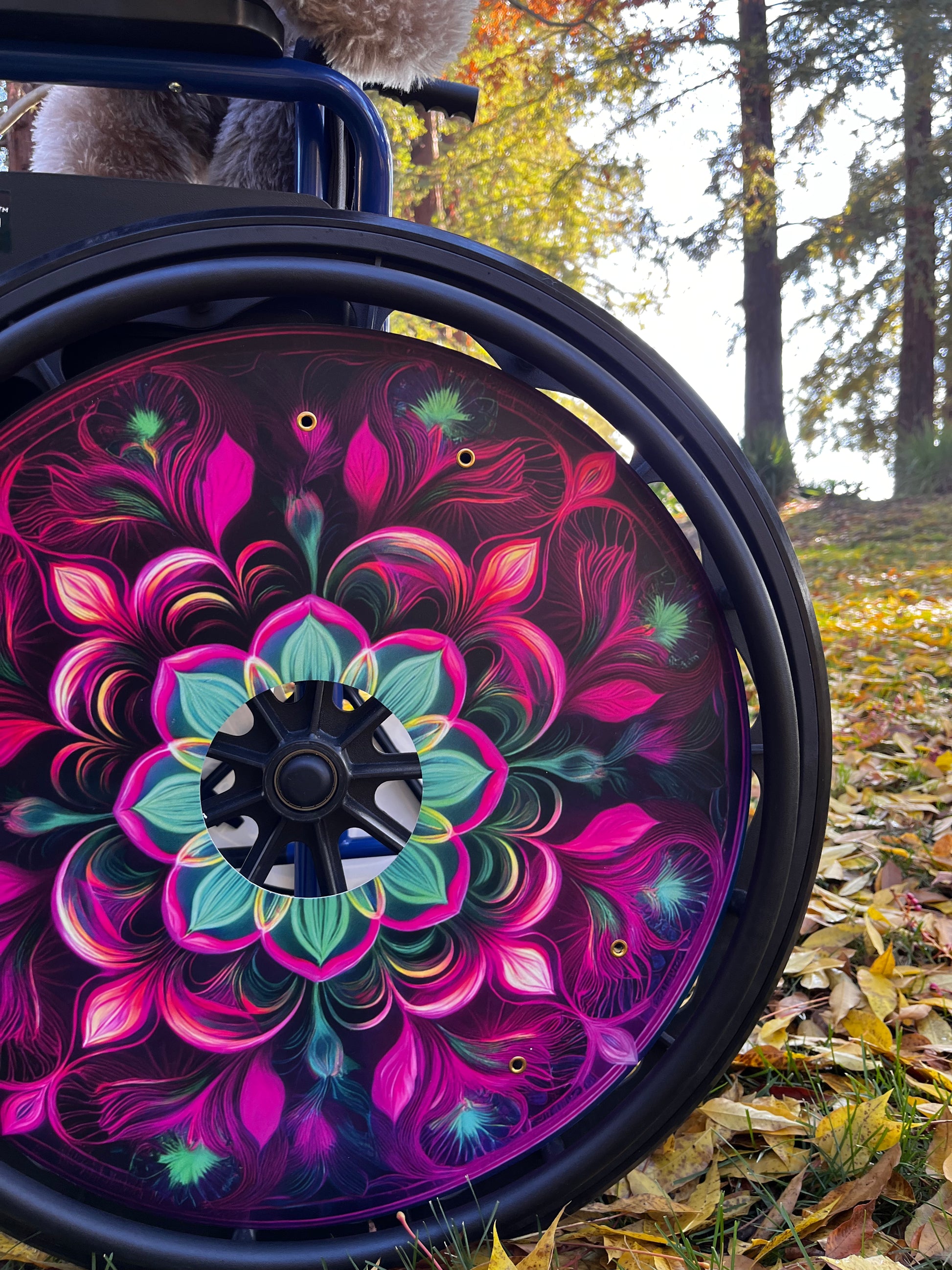 Designer Cover for Wheelchair Wheels, Enhances Aesthetics, Easy Install/Remove, Lightweight