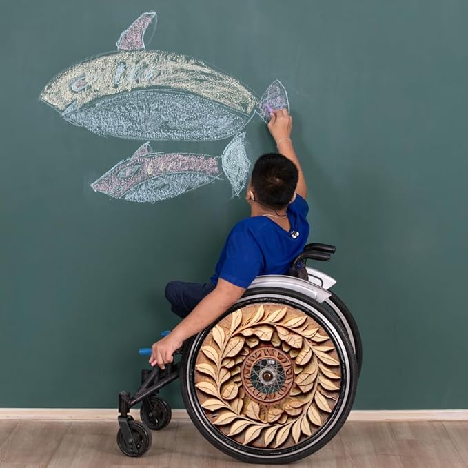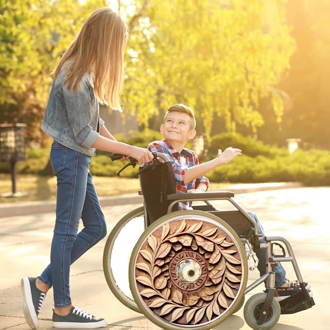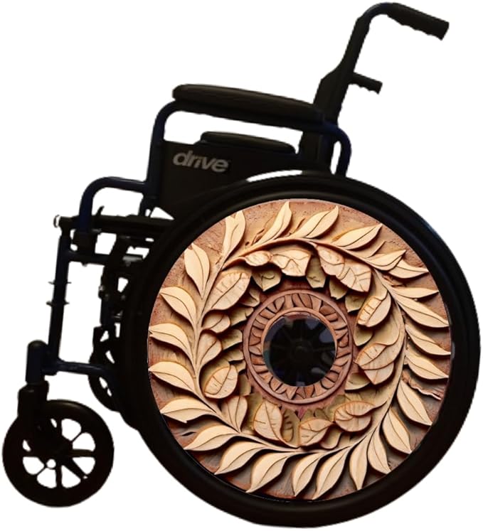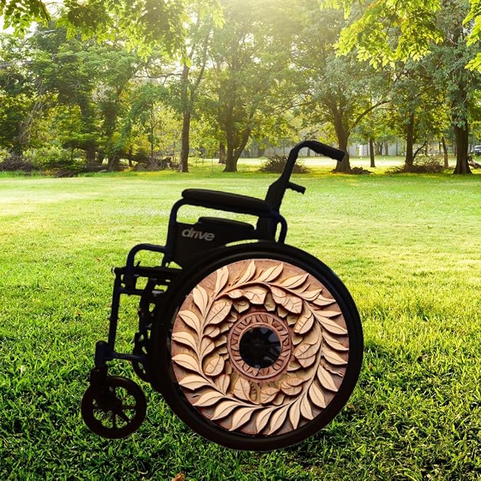 Designer Cover for Wheelchair Wheels, Enhances Aesthetics, Easy Install/Remove, Lightweight (Wooden Flower print)