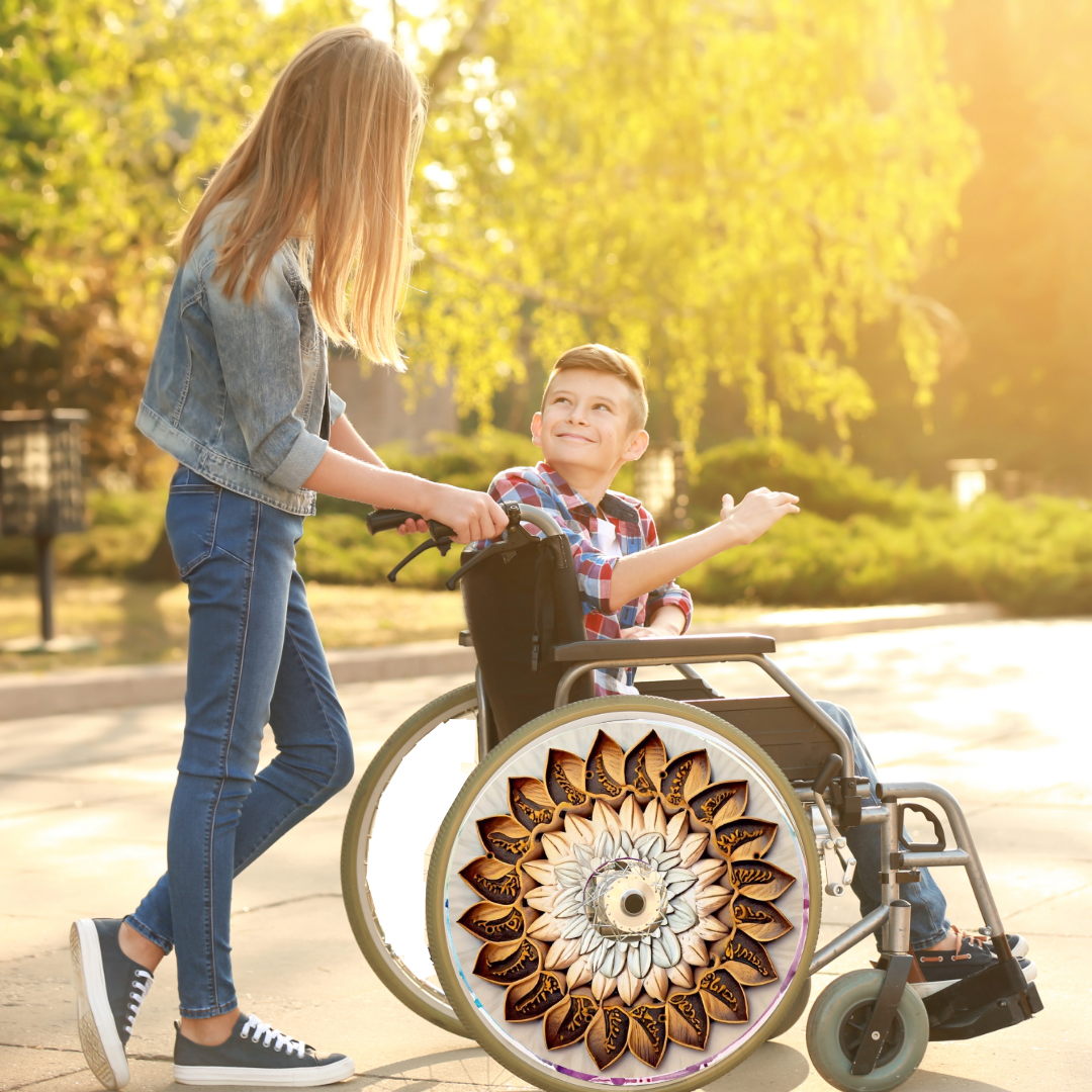 Designer Cover for Wheelchair Wheels, Enhances Aesthetics, Easy Install/Remove, Lightweight (Woodland Blossom)